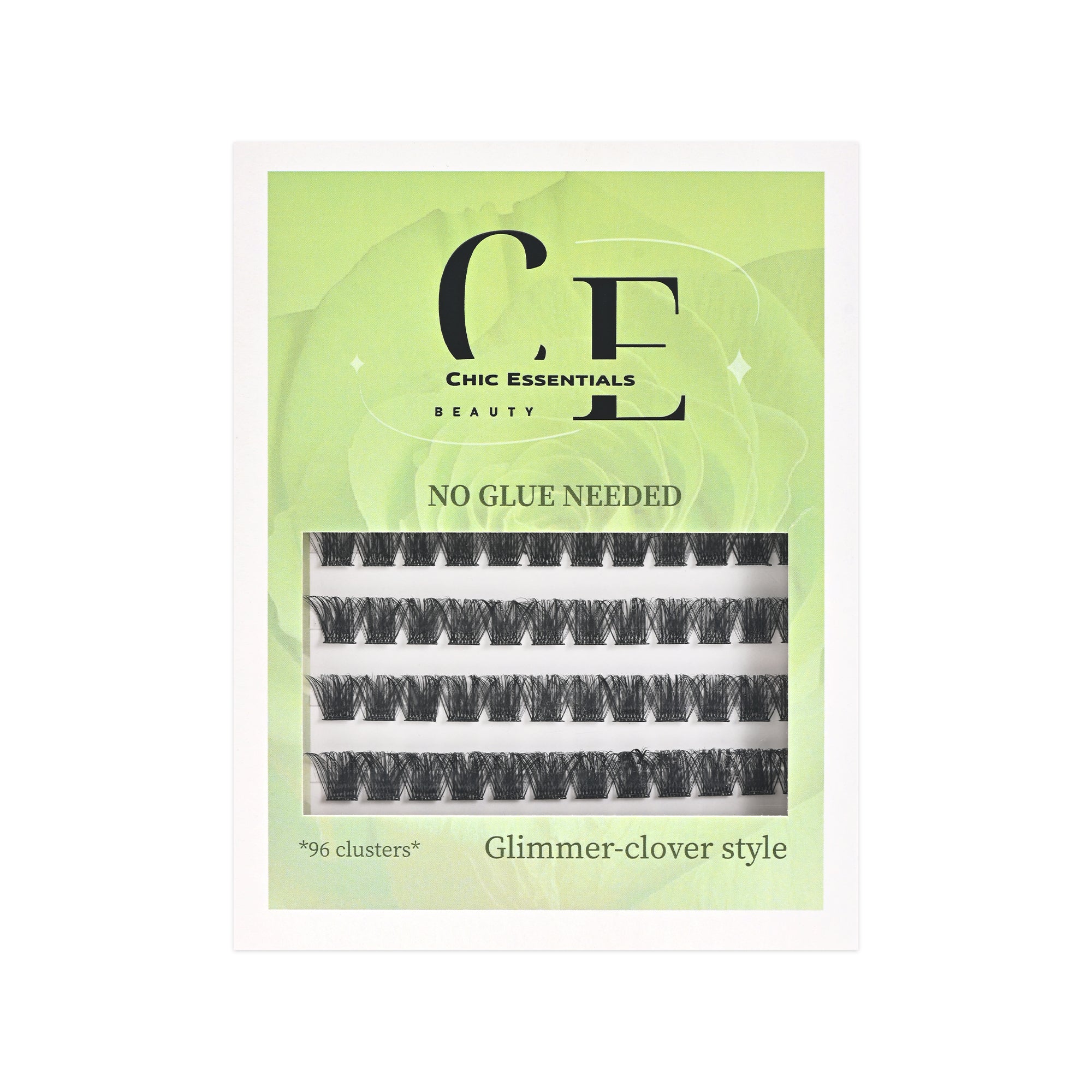 Chic Essentials Glimmer Clover self-adhesive single eyelash gift box contains 96 uniquely designed single eyelashes, inspired by the shining four-leaf clover, which symbolizes luck and beauty. With convenient self-adhesive technology, you can say goodbye to the trouble of glue and it is simple and easy to use. This eyelash can add a touch of sparkle and sophistication to your eye makeup, making you stand out from the crowd.